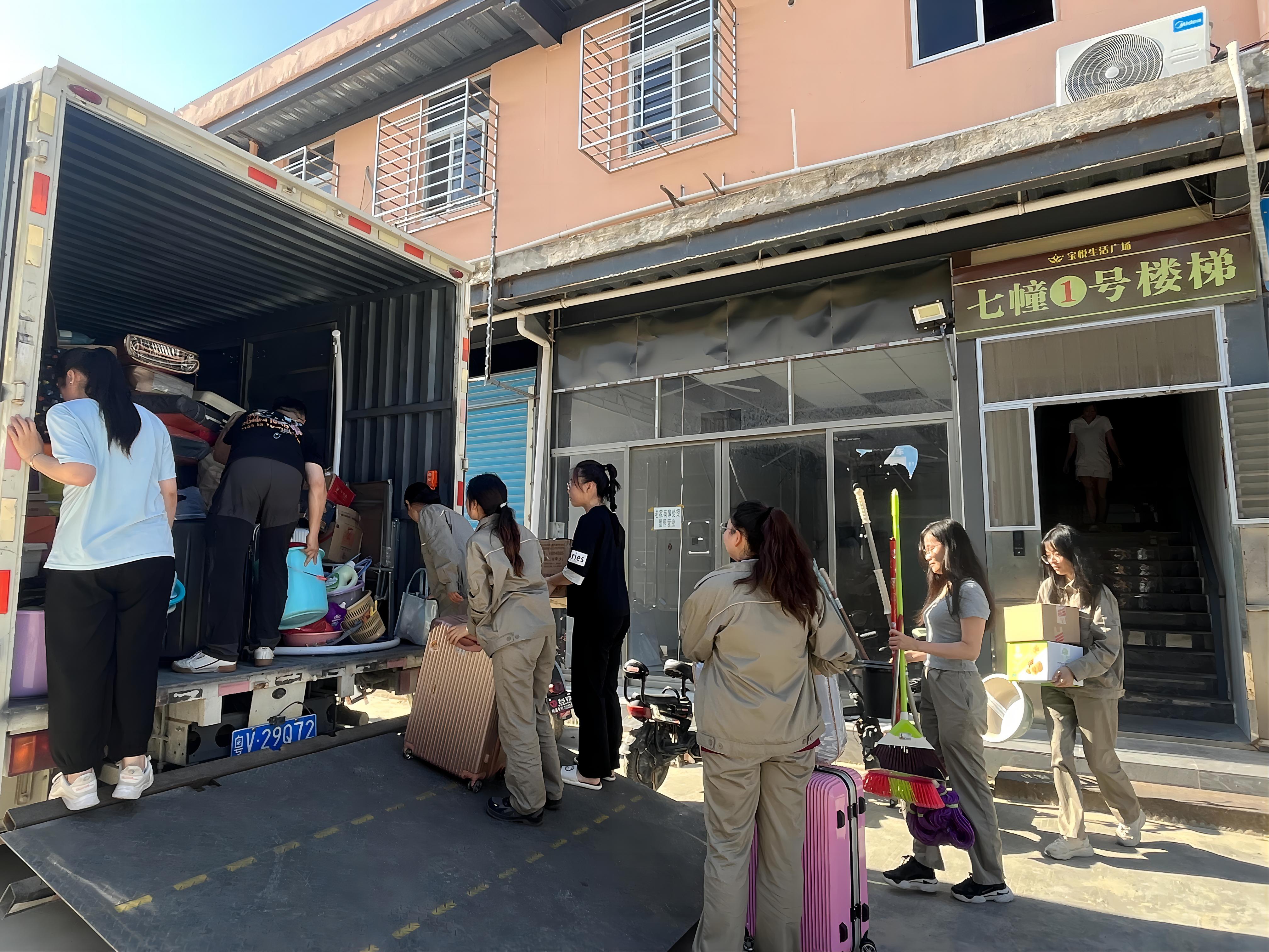 定下房源之后,員工們對新宿舍的期待值拉滿,新宿舍成了大家討論的熱點話題:“新宿舍幾人間啊?”“可以自己選室友嗎?”“聽說新宿舍旁邊有肯德基!”“宿舍有陽臺嗎?”經過一段時間的精心準備,至秋分這天,新宿舍通水通電,食堂也全部裝修完畢,具備入住條件,公司通知全體員工準備搬遷。在一片歡騰聲中,大家回到舊宿舍認真打包行李物品,忙得熱火朝天。在女生宿舍搬遷過程中,不少男同事積極幫忙,將行李物品裝車,到達新公寓后又卸貨,汗如雨下,累并快樂著。